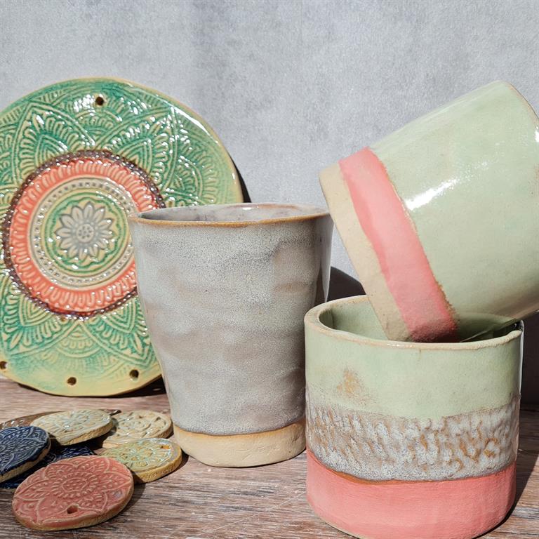 Ton-, Brenn-, und Glasurkosten richten sich nach Verbrauch und werden bei der Kursleiterin extra abgerechnet.